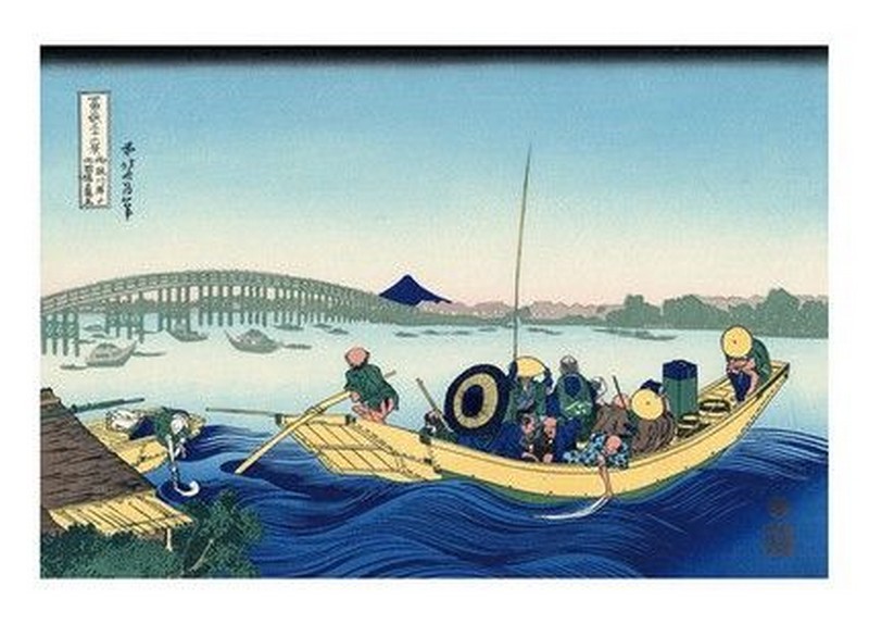 Sunset Across the Ryogoku Bridge from the Bank of the Sumida River at Onmagayashi, с.1830
