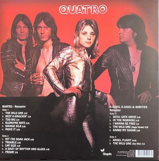 Quatro is Suzi Quatro's second album, released in October 1974 by Rak Records as SRAK 509, with the exceptions of the United States and Canada (where the album was released by Bell Records), Japan (EMI Records) and several territories in Europe (Columbia Records).