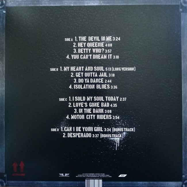 Уявіть собі клуб з живою музикою, а тепер поставте "The Devil In Me" на ваш програвач. Пісні, як "Motor City Riders", "Get Outta Jail" і титульна "The Devil In Me" з легкістю перетворять вашу вітальню на рок-арену. Кожен трек – це сильний вибух енергії, що тече від вінілових доріжок прямо у ваші вени.