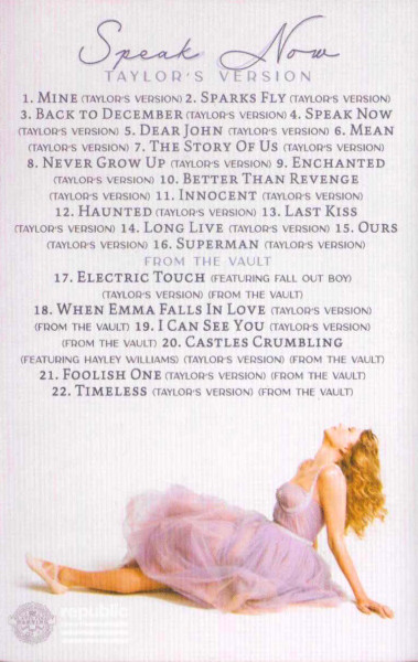 Speak Now — це справжній скарб для фанатів Taylor Swift, а також для тих, хто цінує глибоку лірику та витончену музику. Це ідеальний вибір для домашньої колекції, що не лише прикрасить вашу полицю, але й стане мостом у світ щирих емоцій і нескінченного натхнення.
