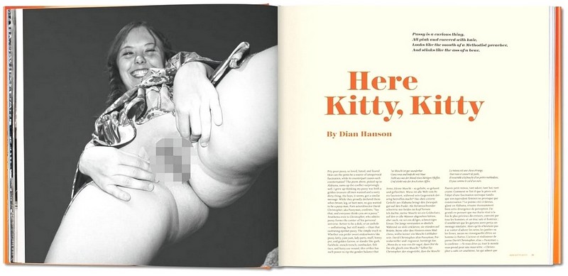 Included are interviews with the auteur known as Pussyman, the ex-cop who turned masturbation into millions with a toy called the Fleshlight, Vanessa del Rio, squirter Flower Tucci, vaginal performance artist Mouse, and the singular Buck Angel. Contemporary photographers Terry Richardson, Richard Kern, Ralph Gibson, Jan Saudek, Guido Argentini, Ed Fox and others share their favorite pussy photos, so that by page 368 even the shiest reader will be calling, “Here, kitty, kitty!”