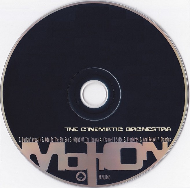 Фірмовий CD-дискMotion is the debut album by the Cinematic Orchestra, released on 27 September 1999 on Ninja Tune. The album's concept came from core band member, Jason Swinscoe, who had amassed various samples - drum patterns, basslines and melody samples - that had inspired and influenced him. He then presented them to a group of musicians to learn and then improvise around. The resulting draft tracks were then re-mixed on computer by Swinscoe to create the finished album.