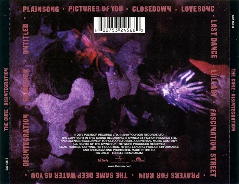 Фірмовий диск (CD)Disintegration is the eighth studio album by English rock band the Cure, released on 2 May 1989 by Fiction Records. The band recorded the album at Hookend Recording Studios in Checkendon, Oxfordshire, with co-producer David M. Allen from late 1988 to early 1989.