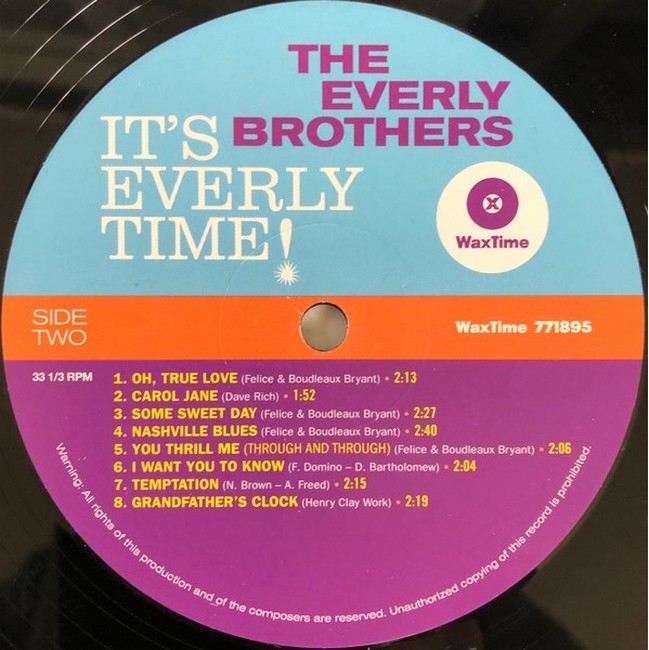 Фірмова вінілова платівка (VINYL)The Everly Brothers were an American rock duo, known for steel-string acoustic guitar playing and close harmony singing. Consisting of Isaac Donald "Don" Everly and Phillip "Phil" Everly, the duo combined elements of rock and roll, country, and pop, becoming pioneers of country rock.