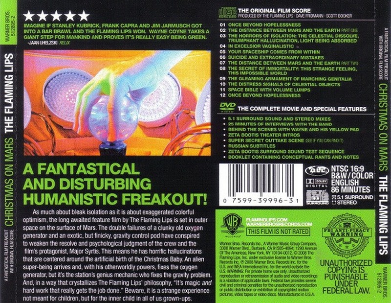 Фірмовий CD-дискChristmas on Mars is a 2008 independent psychological science fiction film from the alternative rock band the Flaming Lips, written and directed by the band's frontman, Wayne Coyne, and featuring the entire band in the cast, as well as many of their associates, including Steve Burns, Adam Goldberg, and Fred Armisen.