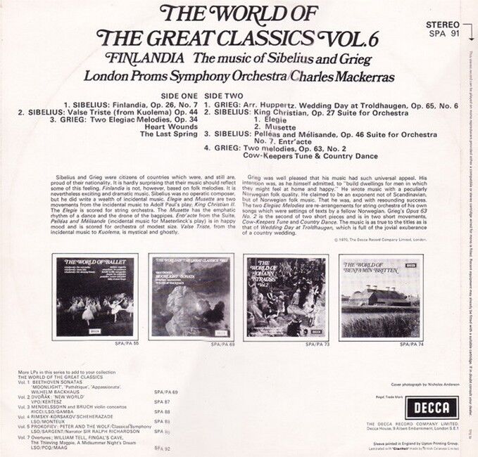 The London Proms Symphony Orchestra Conducted By Charles Mackerras – The World Of The Great Classics Vol.6: Finlandia The Music Of Sibelius And Grieg