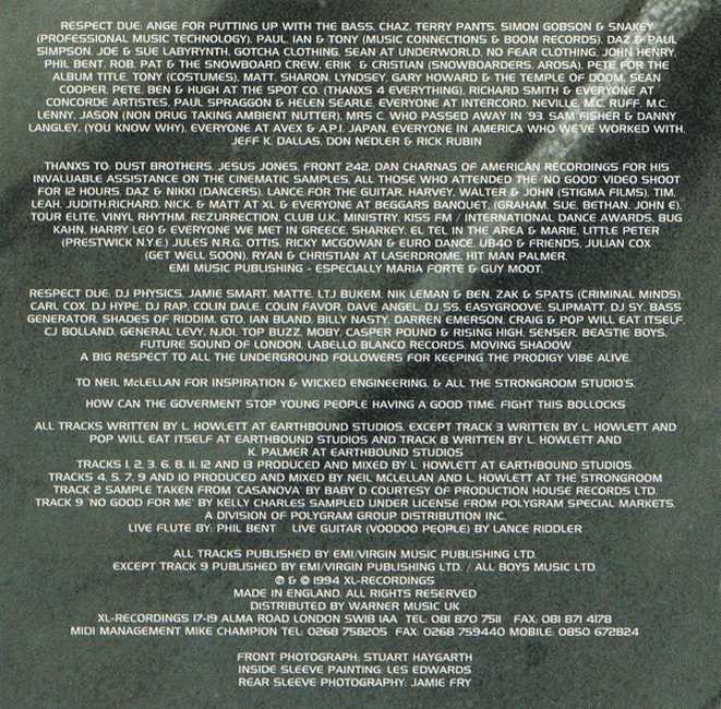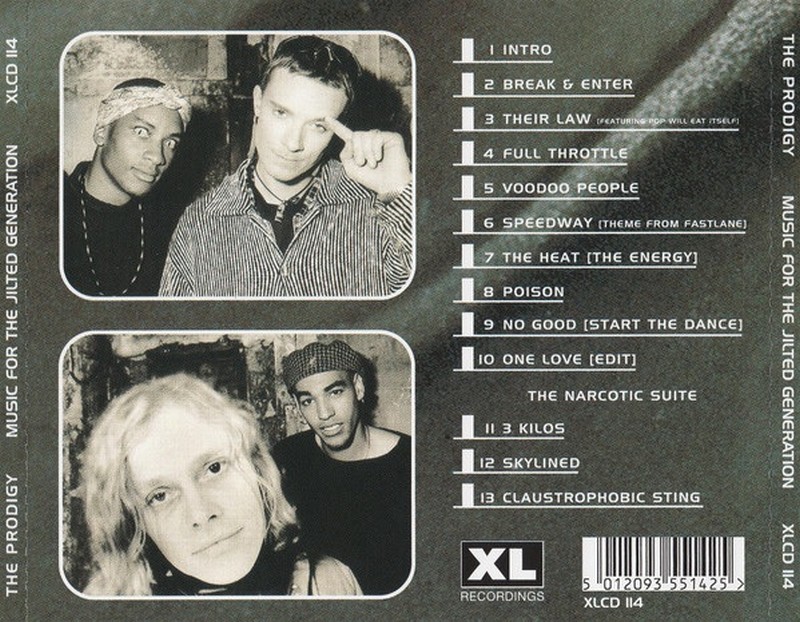 Фірмовий диск (CD)Music for the Jilted Generation is the second studio album by English electronic music group the Prodigy. It was first released on 4 July 1994 by XL Recordings in the United Kingdom and by Mute Records in the United States. As with the group's debut album, Experience (1992), Maxim Reality and Liam Howlett were the only official members of the group to contribute to the album. The other two members, Keith Flint and Leeroy Thornhill, were not credited on any tracks (although all four individuals were pictured in the liner notes).