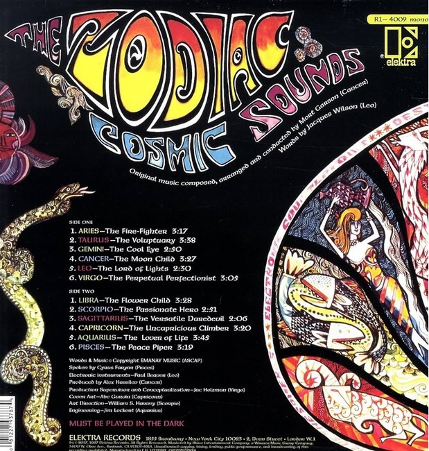 Фірмова вінілова платівка (VINYL)The Zodiac: Cosmic Sounds is a 1967 collaborative concept album on the theme of the signs of the Zodiac. It was issued by Elektra Records in and featured early use of the Moog synthesizer by Paul Beaver, with music written by Mort Garson, words by Jacques Wilson, and narration by Cyrus Faryar. Instrumentation was provided by members of the Wrecking Crew studio collective. It has been variously described as "a wonderful period piece" and "apt to inspire more giggle fits than stoned, pull-the-shades-down reveries".