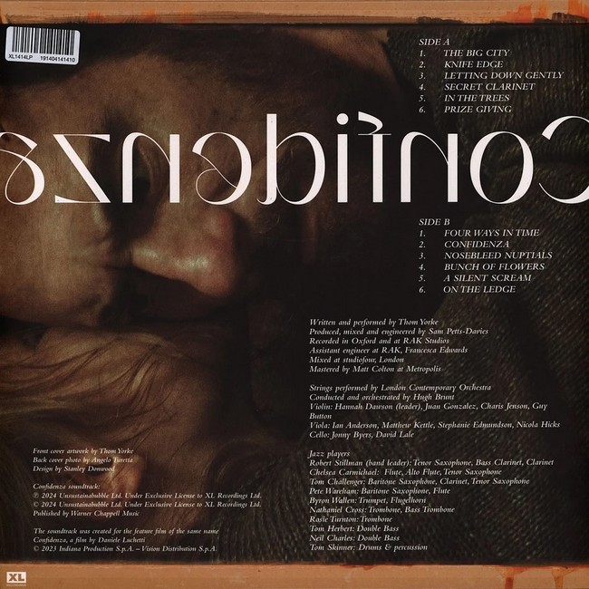 Фірмова вінілова платівка (VINYL)Confidenza (is the soundtrack for the 2024 Italian drama film Confidenza, composed by the English musician Thom Yorke and produced by Sam Petts-Davies. It is Yorke's second feature film score. It was released on 26 April 2024 through XL Recordings.