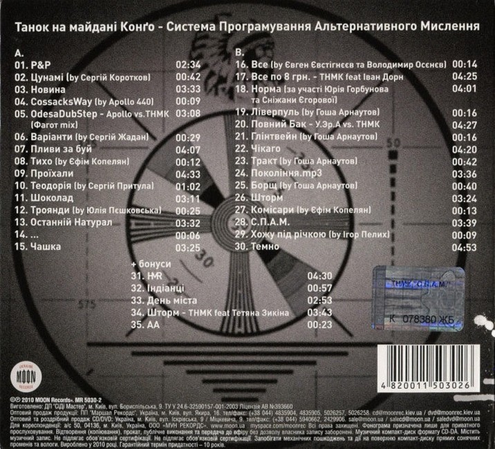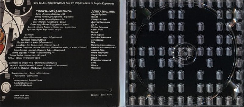 Фірмовий диск (CD)«Танок на майдані Конґо» («ТНМК», іноді стилізують як ТНМКонґо) — український гурт, що виконує музику в стилях репкор, хіп-хоп, рок та фанк. Перший прообраз гурту створили 14 червня 1989 два друга та нинішні учасники ТНМК: Фоззі та Котя. Як ТНМК гурт почав працювати з 1996 року.