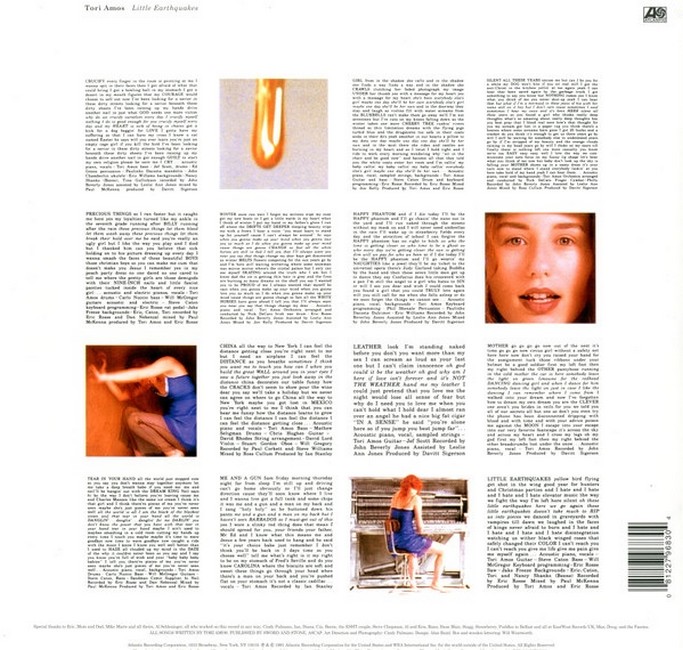 Little Earthquakes is the debut solo album by the American singer-songwriter Tori Amos, featuring the singles "Silent All These Years", "China", "Winter" and "Crucify". After Atlantic Records rejected the first version of the album, Amos began working on a second version with her then-boyfriend Eric Rosse. The album was first released in the UK on January 6, 1992, where it peaked at number 14 in the charts.