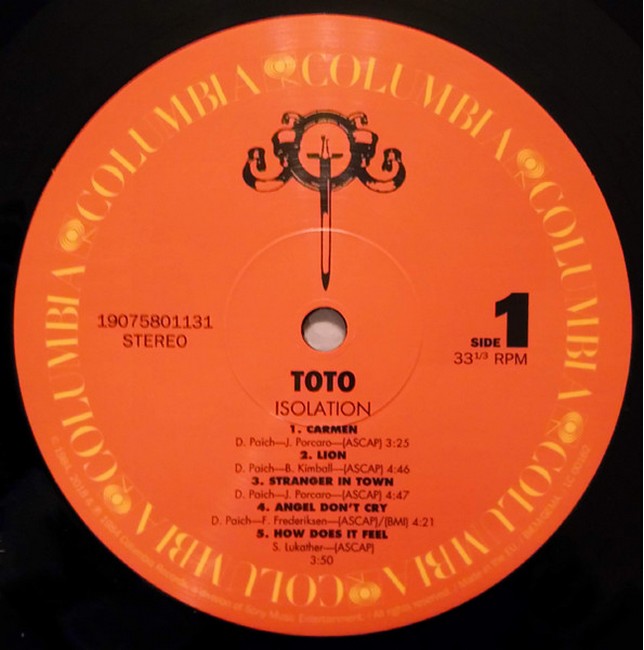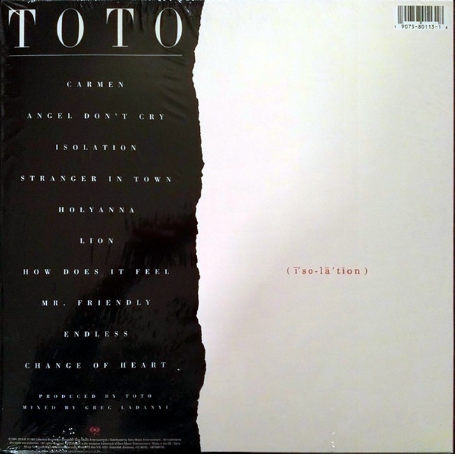 Фірмова вінілова платівка (VINYL)Isolation is the Gold-certified fifth studio album by Toto, released on October 18, 1984. Isolation is the first album to feature longtime bassist Mike Porcaro and the only album with Fergie Frederiksen as the primary vocalist. Isolation failed to achieve the popularity of its predecessor, Toto IV, although it achieved gold record status and gave the band their highest charting mainstream rock single "Stranger in Town" (No. 7). Relatively few songs from this album were featured in live performances after 1985's Isolation World Tour.