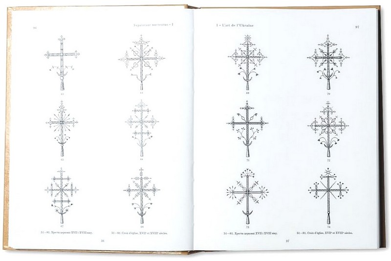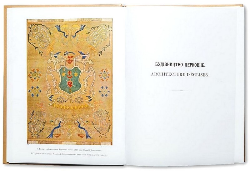 Текст у двотомнику подано українською та французькою мовами, адже за задумом братів Щербаківських двотомник мав стати однією з перших презентацій українського народного мистецтва та архітектури в Європі. Особливливу увагу приділено різьбленню по дереву з Полтавщини: деталі саней, скринь, возів, медівники тощо. В оформленні оригінального видання взяв участь видатний український художник, архітектор та дизайнер Василь Кричевський, який розробив обкладинки для обох томів.