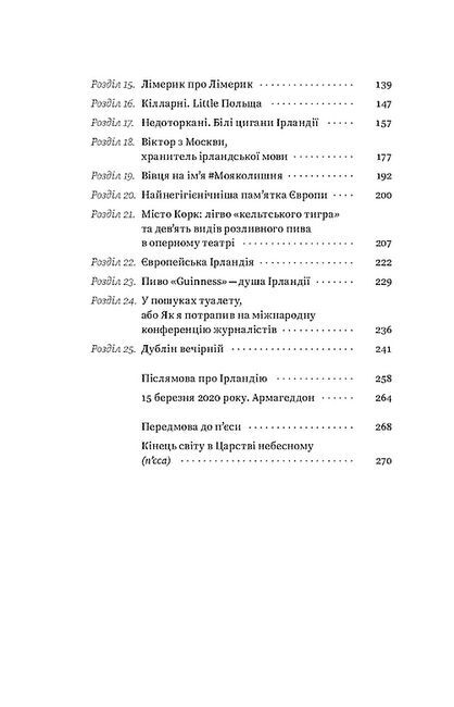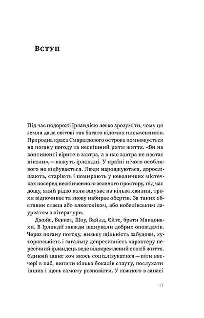 Усе, що ви знаєте про Ірландію, — правда, але…. Але все трішечки не так. «Доля дала цьому острову божественну красу й пекельне горе. Його історія послідовно закручується за спіраллю, наче це безкінечний, розтягнутий на століття День байбака: міжчасся-трагедія, міжчасся-трагедія, міжчасся-трагедія. Вельми схоже на Україну» — описує Ірландію мандрівник і письменник Максим Беспалов.