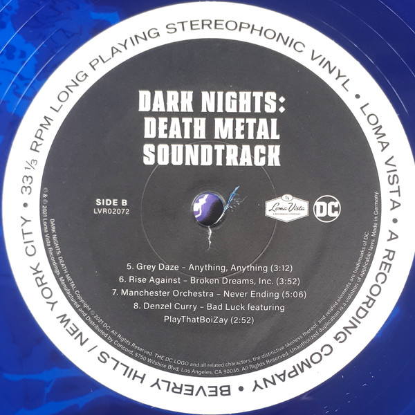 "Dark Nights: Death Metal Soundtrack" — це колоритна суміш жанрів, яка занурює слухача у світ альтернативного року, саундтреку, дез-металу, індастріал-металу, синтвейву та дарквейву. Видано у 2021 році під егідою Loma Vista, ця подвійна платівка в колоритному кольоровому вінілі обіцяє максимальний аудіовізуальний досвід. Упаковка типу Gatefold доповнює цей культовий збірник.