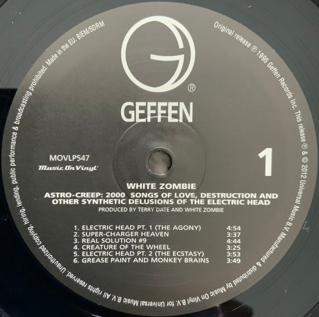 Фірмова вінілова платівка (VINYL)Astro-Creep: 2000 – Songs of Love, Destruction and Other Synthetic Delusions of the Electric Head is the fourth and final studio album by American heavy metal band White Zombie, released on April 11, 1995, by Geffen Records. The album proved to be their most commercially successful recording, peaking at number six on the Billboard 200 with the aid of the popular hit singles "More Human than Human" and "Super-Charger Heaven". It was the band's only studio album to feature John Tempesta on drums.