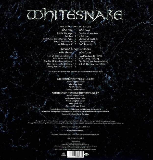 Альбом "1987", який також відомий як "Whitesnake", був випущений у розпал гламурного декадансу епохи hard rock та instantly став хітом. Сингли "Here I Go Again" та "Is This Love", що стали настільки популярними, наче незмінні саундтреки романтичних історій та відродження духу свободи, завжди знайдуть відгук у серцях слухачів.