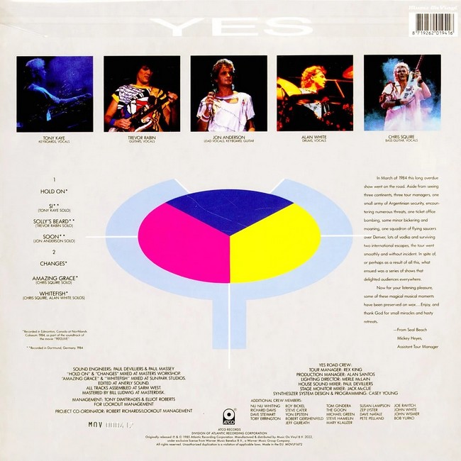 Фірмова вінілова платівка (VINYL)9012Live: The Solos is the third live album by English rock band Yes, released as a mini-LP on 7 November 1985 by Atco Records. Recorded during their 1984 world tour in support of their eleventh studio album, 90125 (1983), the album features a selection of solo tracks performed by each of the five band members, plus live versions of two songs from 90125. The album was a companion release to the band's 1985 concert film, 9012Live. In 2009, the album was reissued in Japan by Isao Kikuchi for Warner Music Japan, with two bonus tracks.